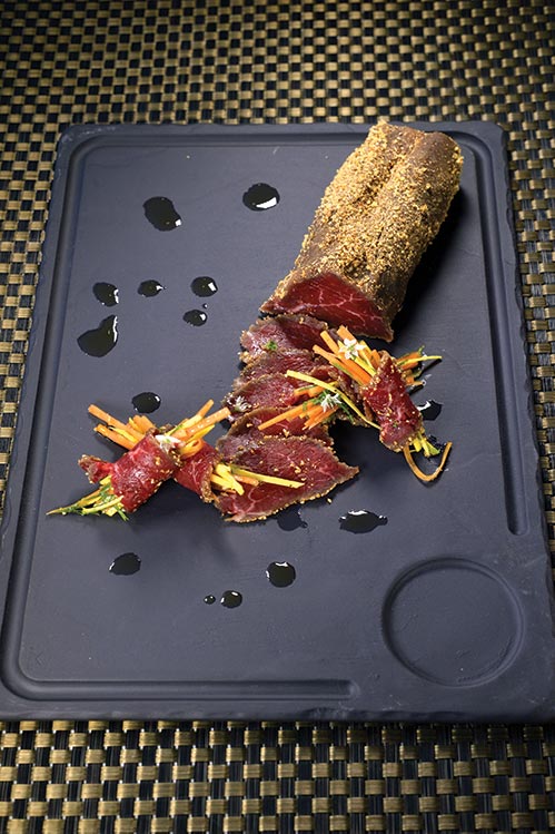 Rincer le filet de bœuf abondement à l'eau claire, puis le laisser dessaler dans l'eau pendant 24 h. Ensuite, bien le sécher dans un torchon propre. Enfin, conservez-le en bas du frigo pendant 2 ou 3 jours avant de le tailler.